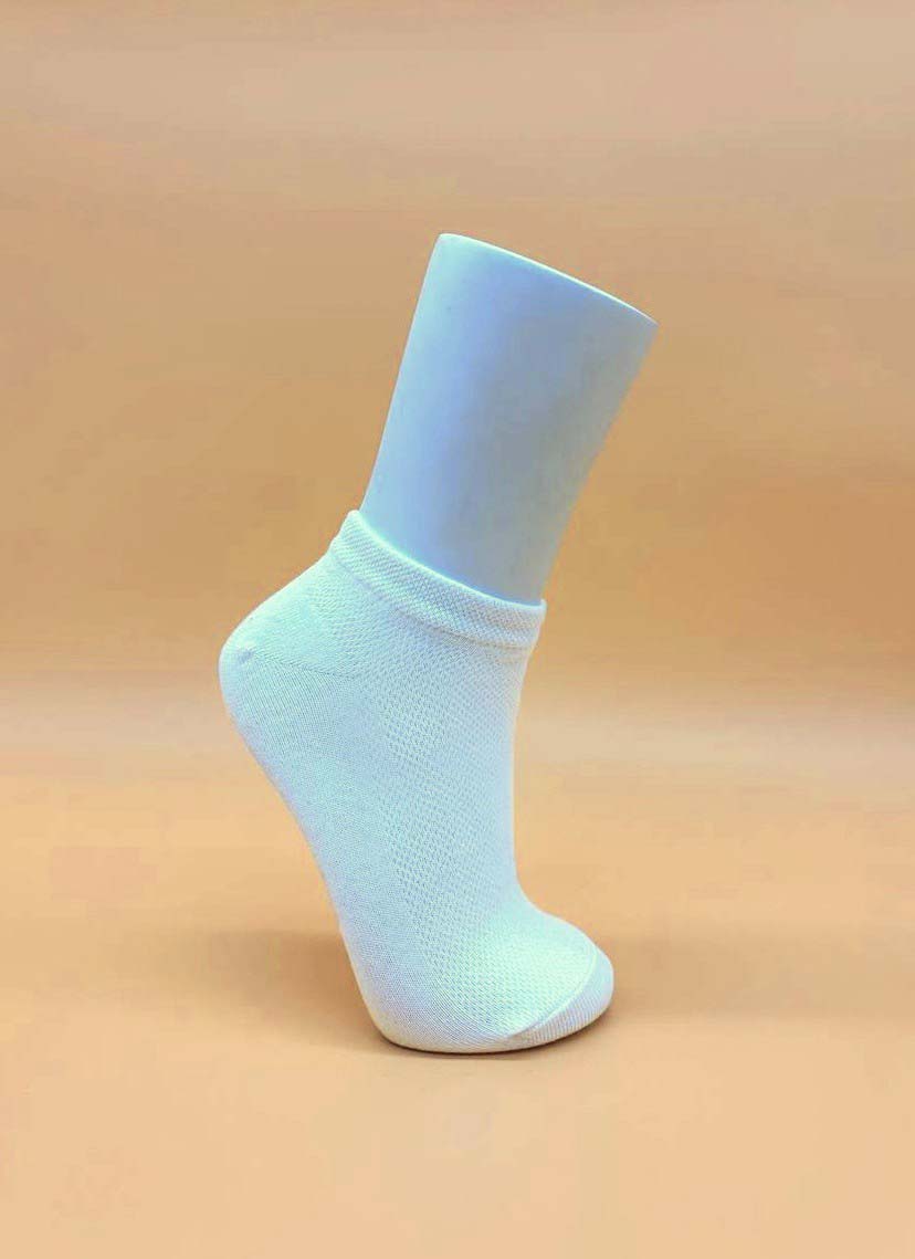 Носки женские однотонные с двубортной резинкой для надёжной фиксации на ноге. Мягкие, комфортные, с сеткой для повышенной воздухопроницаемости. Данная модель подходит для активного дня и ежедневной носки.