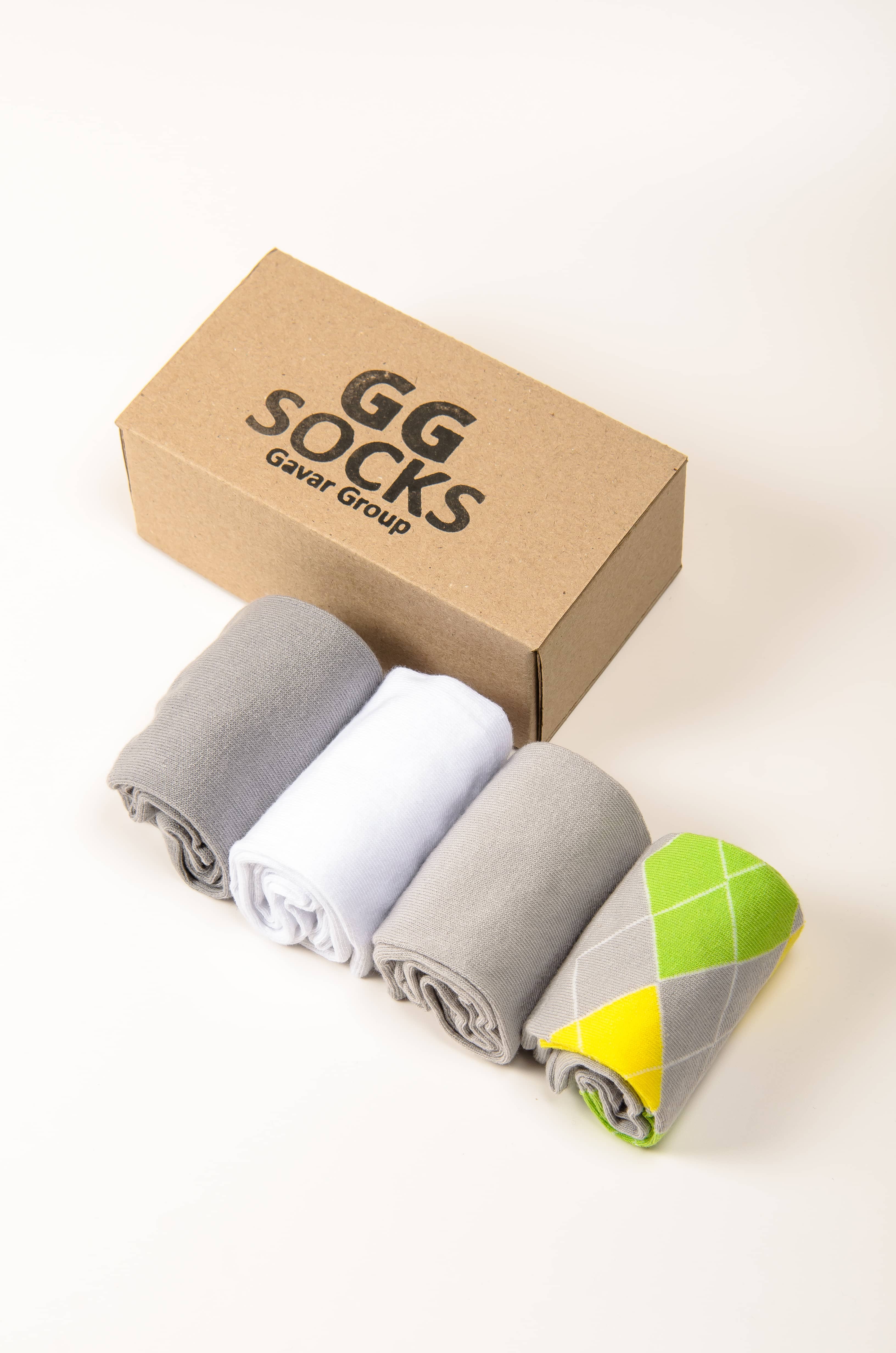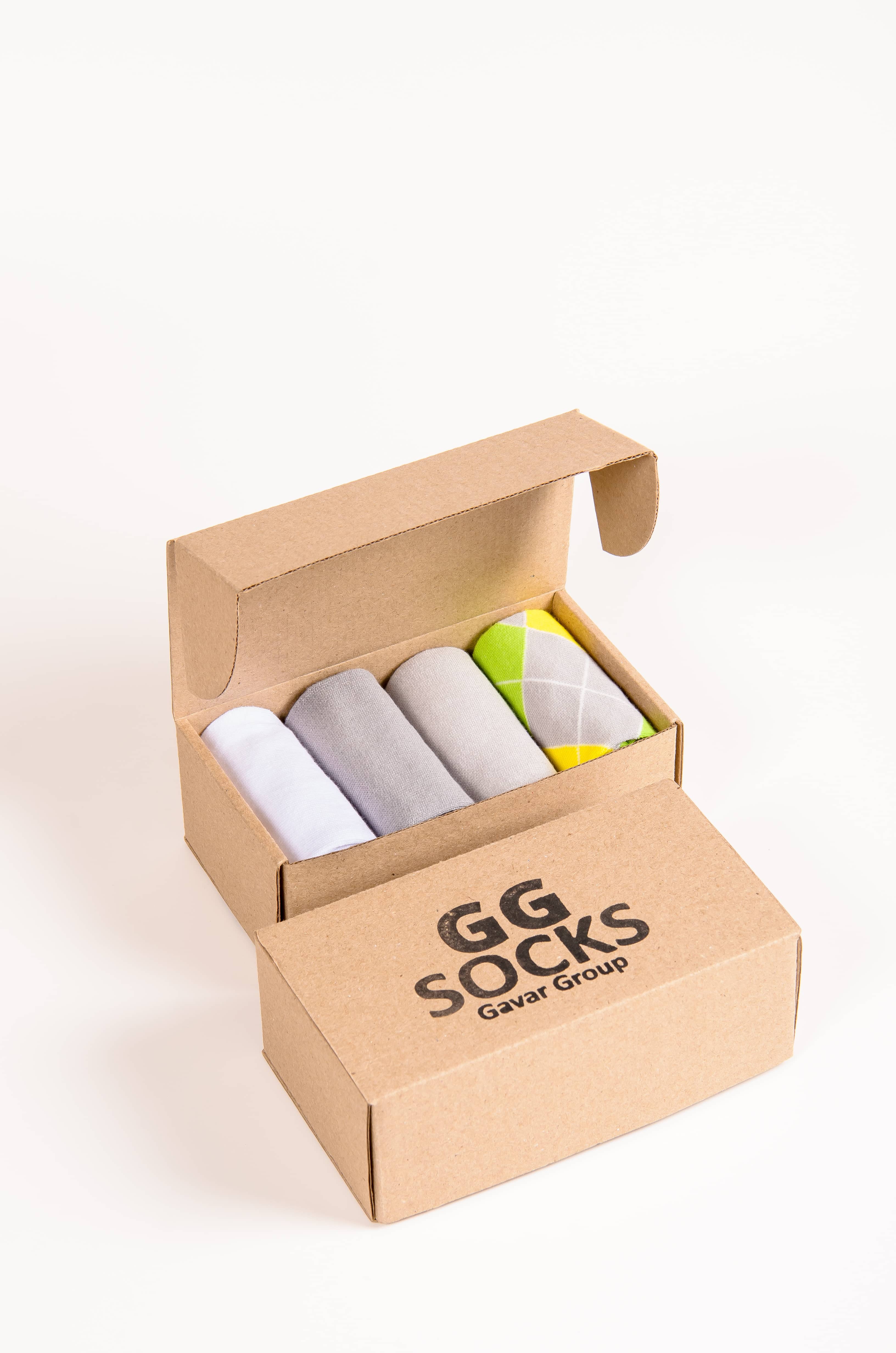 Подарочный набор мужских носков 4 пары с рисунком. С двубортной резинкой для надёжной фиксации на ноге. Мягкие, эластичные и комфортные для ежедневной носки.